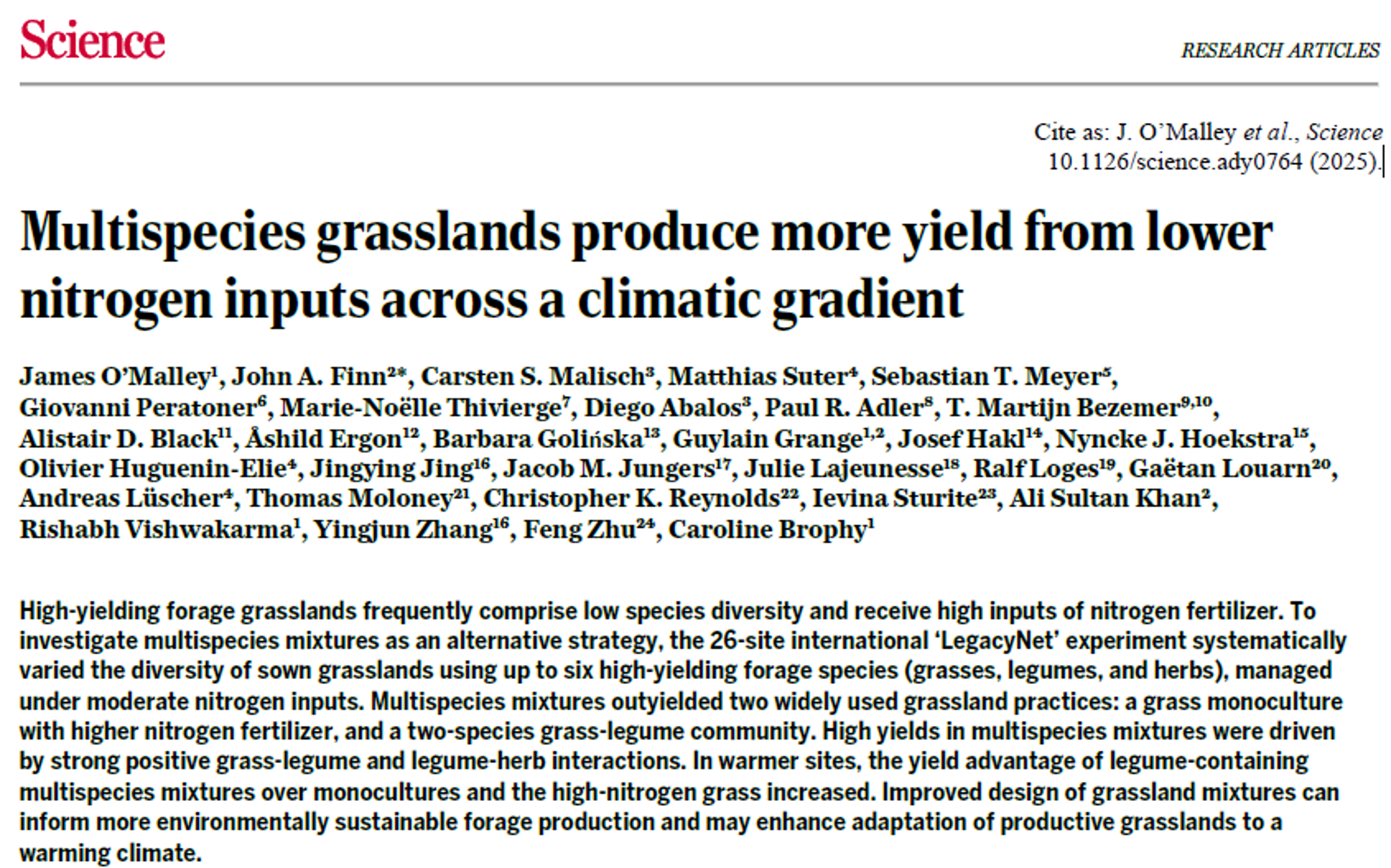 With the European Green Deal, the EU has committed to transition to carbon-neutral and sustainable systems of agriculture. LegumeLegacy aims to adapt existing mixed or ruminant based production systems, using state of the art knowledge from ecology, agronomy, statistics and other fields to minimize greenhouse gas emissions, nutrient inputs and leaching (and costs), while increasing carbon stocks, biodiversity and yield stability. To achieve this, an exceptional and distinctive strategy of LegumeLegacy includes a common experiment across multiple LegumeLegacy sites; 11 Doctoral Researchers will collaborate on the common experiment and have their own distinctive and complementary research objectives.